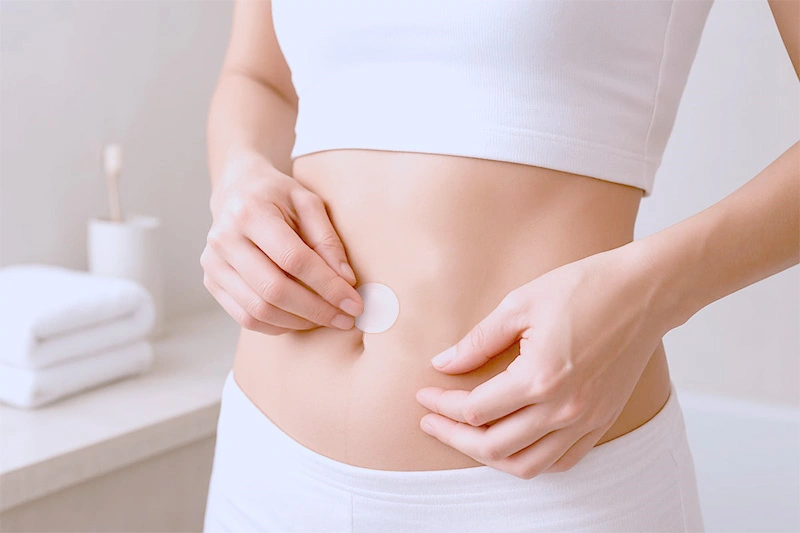 Apply to the arm or abdomen and press firmly for 20 seconds to ensure adhesion.