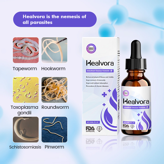 Parasites can burrow into the bile ducts, pancreatic ducts or appendix, causing intestinal perforation, and may even enter your brain via the bloodstream. The active ingredient in Healvora can enter the bloodstream directly through the digestive system, providing the most rapid and effective means of inhibiting parasites.